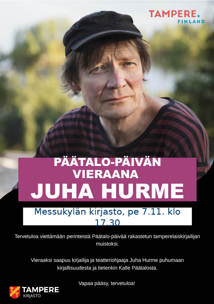 Kirjastolla jälleen Päätalo-päivän tapahtuma. Vieraaksi saapuu kirjailija ja teatteriohjaaja Juha Hurme, joten mielenkiintoista kuunneltavaa luvassa. Tilaisuus alkaa kahvittelulla klo 17, jonka jälkeen klo 17:30 Juha Hurme päästetään ääneen, tervetuloa tapahtumaan! Tapahtumaan on vapaa pääsy! |